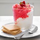 Pour the strawberry mixture into the chilled baking dish. Place the dish, uncovered, in the freezer for 4 to 6 hours, scraping the mixture with the prongs of a fork every hour to help form tiny ice flakes.