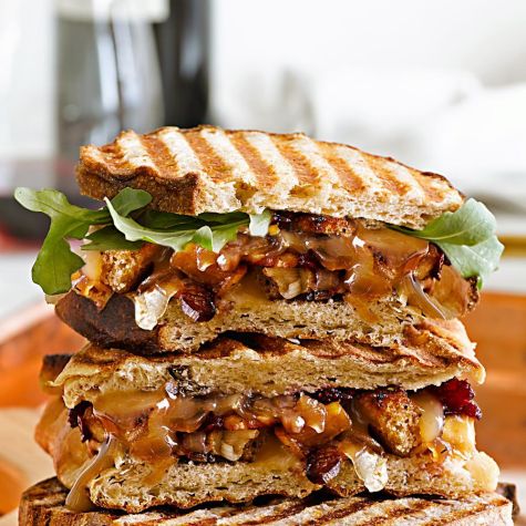 Transform leftover Thanksgiving stuffing and cranberry sauce into this delicious next-day sandwich. Onion jam lends a savory note, and a spoonful of warm gravy adds a rich finishing touch.