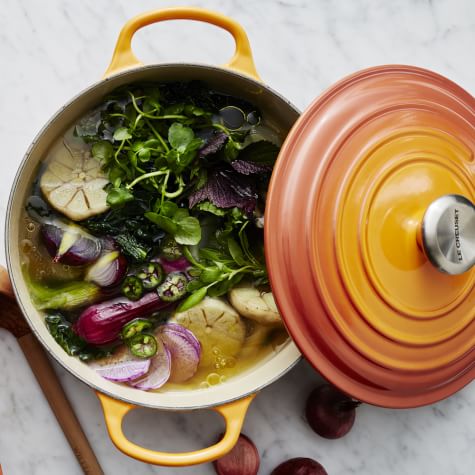 Full of fresh vegetables, herbs and aromatics, this fragrant broth is a delicious way to boost your immunity, soothe your stomach and comfort your soul. Infinitely adaptable, it can be made with almost any vegetables and herbs that you might have in your fridge; try using Swiss chard instead of kale, for example, or replace the radish with bok choy. Garnish with a handful of fresh herbs and serve as a light, nourishing soup, or simply pour the broth into a mug and sip it for an easy breakfast on the go.