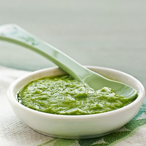 Variation: After baby has tried a number of flavors, serve up some creamy combos: swirl together equal parts of the pea puree and rice cereal, or blend pea puree with a little zucchini puree.