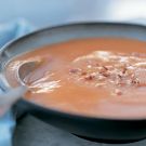 Using a food processor or blender, process the soup to a smooth puree. Return the soup to the pan and reheat to serving temperature. Season with salt and pepper. Ladle into soup bowls, garnish with the pecans and serve. Serves 4.