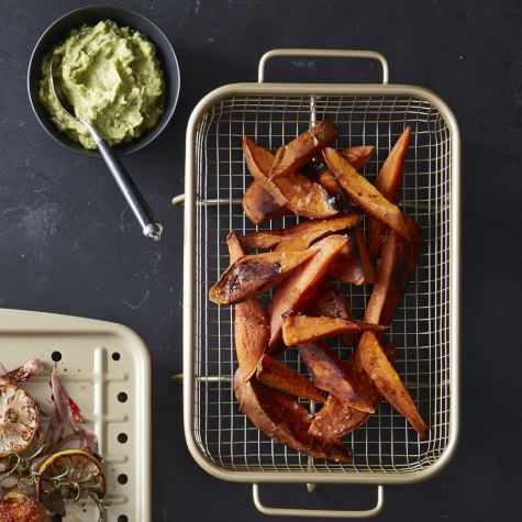 Two nutritional powerhouses—sweet potatoes and avocado—join forces in this healthful and delicious side dish that also makes a game-day great snack. Using the air fry function of a Breville Smart Oven Air will ensure that the sweet potatoes are satisfyingly crisp on the outside and tender on the inside, but you can also cook the potatoes on a baking sheet in a standard 425°F (220°C) oven. They won’t be as crisp, but they will still be delicious.