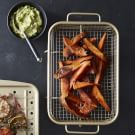 Two nutritional powerhouses—sweet potatoes and avocado—join forces in this healthful and delicious side dish that also makes a game-day great snack. Using the air fry function of a Breville Smart Oven Air will ensure that the sweet potatoes are satisfyingly crisp on the outside and tender on the inside, but you can also cook the potatoes on a baking sheet in a standard 425°F (220°C) oven. They won’t be as crisp, but they will still be delicious.