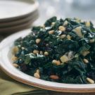 Swiss chard and spinach are often used interchangeably in Italy. Both can be prepared this way, though chard is especially good, as its natural sweetness is complemented by the flavors of the raisins and butter.