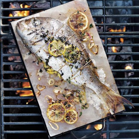Cooking snapper on a Himalayan salt plank gently seasons the fish as it cooks and adds a subtle mineral note. If you can’t find tai snapper, red snapper, grouper and dorade are all good substitutes, though you’ll have to adjust the cooking time based on the size and thickness of the fish.
