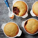These spicy little pies, filled with chile-spiked chorizo, beef, tomatoes, black beans and corn, make a great family supper, but they're also fun to serve at a casual Tex-Mex fiesta. Prep the filling up to 2 days ahead, then stir up the corn bread topping at the last minute before baking. If you don’t have cocottes, you can bake the mixture in a 9-inch (23-cm) square baking dish and bake as directed instead.