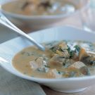 For a spicier soup, add 2 seeded and minced Thai or serrano chilies. Use kitchen gloves to protect your hands while mincing and seeding chilies, as they have volatile oils that can irritate your skin.