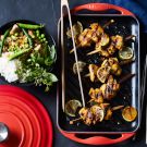 Born in Bangkok and raised in Seattle, acclaimed chef Max Borthwick, along with his mother, Toi, co-owns Thaifusions, where they transform their family recipes for Thai curries and grilling sauces into handcrafted packaged products. Here he shares how you can use their peanut grilling sauce to make chicken satay in a flash. Max says, “In Thailand you can find satay at street vendor stalls, where they sell an array of everything grilled on a stick. Satay is meant to be a portable snack eaten quickly on the run.”