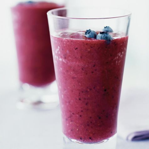 Using frozen berries gives these smoothies a rich, thick texture and allows the drinks to be served without ice, which would dilute the flavor. The night before serving the smoothies, freeze the berries in a plastic container. If fresh fruits are unavailable, use unsweetened frozen berries, available at most markets.