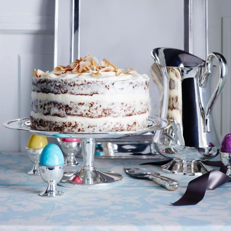 Serve immediately, or cover with a cake dome and refrigerate for up to 2 days. Bring to room temperature and garnish with coconut flakes before cutting into slices and serving. Serves 12.