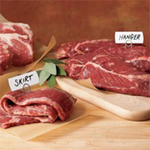 Actually, some of the most flavorful cuts are also the most economical. With steaks, look for flank, skirt, hanger and flat-iron, commonly called flat steaks or butcher’s cuts. If your recipe calls for one of these cuts, you can use any of the others with equally good results. The key to making these flavorful cuts tender is to slice them perpendicular to the fibers (grain); otherwise they will end up being a little chewy.