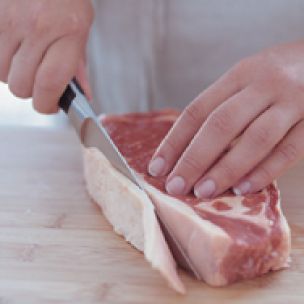 Look for cuts with a high degree of marbling as these will be more tender and juicy than leaner cuts. Most butchers recommend leaving a layer of fat 1/4 to 1/2 inch thick around steaks and roasts. This small amount helps to flavor the meat and keep it moist as it cooks.