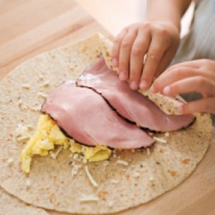 Picky eaters can customize their own rise n’ shine meals with a few versatile ingredients. Scramble eggs and lay out whole wheat tortillas, ham or turkey, cheese and your kids’ favorite vegetables so they can assemble their own nutritious breakfast wraps.