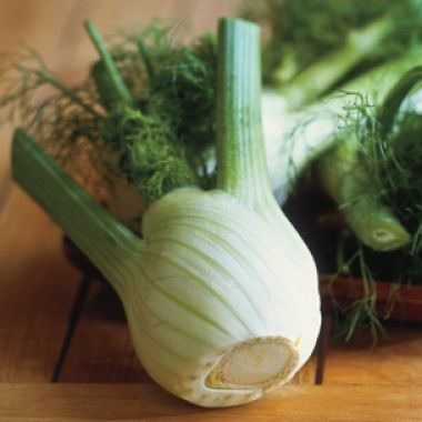 Fennel's leaves, seeds and stems all have a sweet, faintly aniselike flavor. The stems of fennel swell and overlap at the base of the plant to form a bulb with white to pale green ribbed layers that are similar to celery in appearance and texture. Light and feathery, the pretty green leaves slightly resemble fresh dill. Use them as a bed for steaming fish or in small amounts as a garnish.
