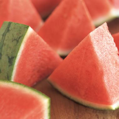 Unlike their relatives the muskmelons, watermelons belong to a small, simple family. The choices are round or oblong, solid green or striped, with or without seeds. Watermelons have deep pink to bright red flesh that is crisp, juicy and sweet. Yellow and now orange-fleshed hybrids are sometimes available.