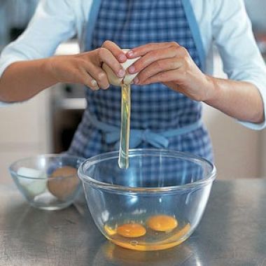 Gently but firmly tap the middle of the egg on the edge of a bowl to crack the shell.