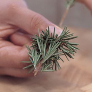 For small-leafed herbs like thyme or woody herbs like rosemary, gently run your thumb and index finger down the stems to remove the leaves.