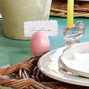 Place cards aren’t reserved for formal sit-down dinners; they can provide a special touch for guests of all ages. For the kids, use chocolate bunnies as place cards, tying the name tag and ribbon around their necks.