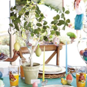A festive tabletop tree speaks to the heart of the Spring season: rebirth and new life. Decorate the trees with colorful ornaments that complement your table, or nestle dyed eggs between the branches.