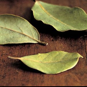 These elongated gray-green leaves are used to flavor sauces, soups, stews and braises, imparting a slightly sweet, citrusy, nutty flavor. Remove bay leaves from a dish before serving. Fresh bay leaves can occasionally be found in your market but you’re more likely to find them dried in the spice aisle.
