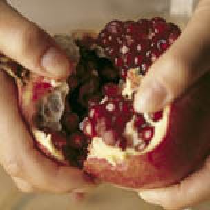 2. Carefully break the fruit apart with your hands and pull back the skin to reveal the seeds.