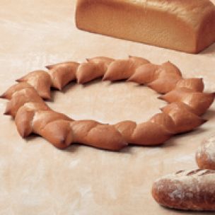 A specialty bread that make a festive addition at holiday time, the couronne d'epis is a baguette formed into a couronne, or "wreath."