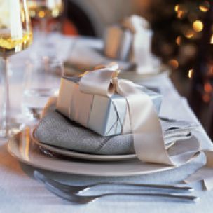 When setting the table, place a wrapped gift with a name tag that doubles as a place card on each plate.