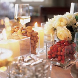 An array of glass containers showcases colorful seasonal objects in the simple, elegant centerpiece for your holiday table.