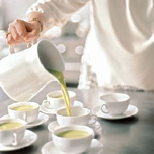 Look at your serving pieces in a new way. For example, pureed soups can be poured from a decorative pitcher into large teacups. Or serve an appetizer or first course in a martini glass, wineglass or shot glass.