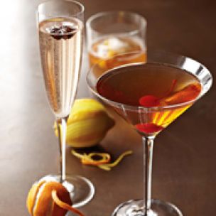 Keep festive ingredients on hand for garnishing cocktails. Whole spices like cloves and star anise bring holiday flavors to the bar, while citrus tools can create lovely, aromatic strips of color to add to drinks. When in doubt, olives and cherries make tasty garnishes.