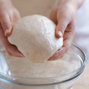 Form the dough into a ball by tucking the sides of the dough underneath and lightly pinching them together. Rotate, tucking and pinching, until a ball forms. Place the ball in an oiled bowl and cover with plastic wrap.