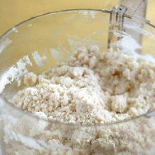When the dough is done, it should come together in a rough mass in the food processor bowl but not form a ball. Do not overmix or the crust will be tough.