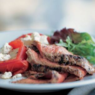 While you’re grilling an herbed flank steak, toss some tomatoes on the barbecue as well. Sprinkle with crumbled goat cheese and you’ve got a satisfying summer supper.