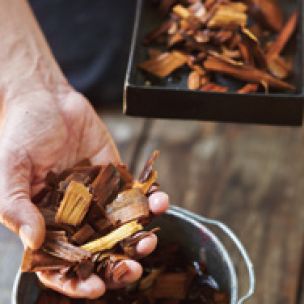 Don't use all hickory chips, which can give the ribs a bitter edge. Instead, use a mix of hickory and oak or a fruit wood.