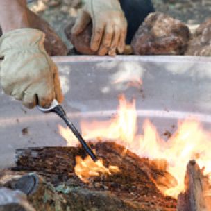 Use a shovel or rake to clear an area to build your own pit. Choose a nonflammable surface such as a steel drum, brick, gravel, or dirt. Line the bottom and sides of the drum or pit with large stones to retain the heat.