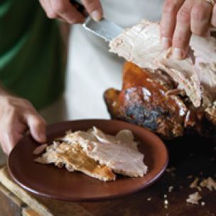 After you have successfully removed the pig from the spit and onto a table or large work surface, it’s ready to be carved. Using a large carving knife, start at the cheeks and shoulder and work your way through the ribs and tenderloin to the hindquarters. Carve against the grain.