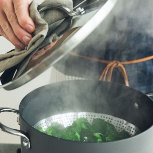 - Take good care: Hot steam can scald you, so open the pot lid carefully. Protect your hand with an oven mitt and open the lid at an angle.