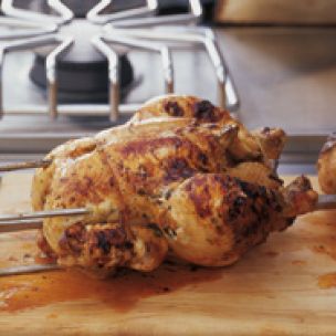 The key to using a rotisserie is to balance food as evenly as possible on the spit. If the food is not well-balanced, the motor will strain and jerk, resulting in uneven cooking, lost juices and undue stress to the motor. Most rotisseries come with a counterweight system that can be adjusted to compensate for the awkward shape of certain foods.