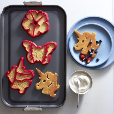 You don’t have to be an artist or expert food stylist to turn out the prettiest pancakes ever, thanks to the availability of pancake molds in all sorts of whimsical shapes, from circus animals to flowers and butterflies, to planes, trucks and trains. You can even find molds to celebrate many holidays, so you can wow the kids by serving bunny-shaped pancakes at an Easter brunch, or start a new annual tradition by serving Santas and snowflakes on Christmas morning. Check out our entire collection here.