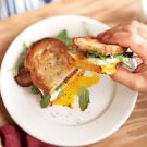 Made with crispy bacon, fried eggs and cheddar cheese, this sandwich is perfect for quick morning meals. Fresh arugula adds a peppery note.