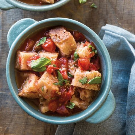 Tomatoes are so packed with goodness, it’s a shame to toss them when they’re past their prime. This is a great use for overripe tomatoes as well as stale bread. This rustic soup looks beautiful with a light sprinkling of grated mozzarella or Parmesan on top.