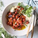 Looking for a simple appetizer that’s guaranteed to impress? Cook a big batch of cherry tomatoes low and slow in the oven with lots of olive oil. This process renders them very tender and concentrates their sweetness, creating a rich, flavorful confit. Then invite diners to pile the confit on crusty bread along with spoonfuls of creamy burrata cheese and roasted garlic cloves. The confit can be served warm or at room temperature—it’s delicious either way!
