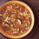 This colorful soup makes use of the best that summer has to offer. The tomato broth is partially pureed to add satisfying thickness to the finished dish.