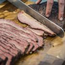 Transfer the brisket to a carving board and make a small opening in the foil to let steam escape. After 10 minutes, close the opening and let the meat rest in the foil for 1 hour before slicing. Remove the brisket from the foil, cut into slices and serve. Serves 8 to 12.