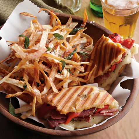 Tre Salumi & Provolone Panini with Herbed Haystack Fries