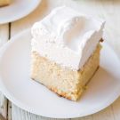 In this version of tres leches cake, a dessert that’s popular in many parts of Latin America, a simple white cake is soaked in a luscious sauce made from three milks and a hint of rum. For a colorful presentation, garnish the fluffy, glossy meringue frosting with tropical fruits such as papaya, mango and pineapple.