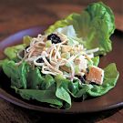 Line a platter with the lettuce leaves. Mound the turkey mixture atop the lettuce. Serve immediately. Serves 4.