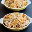 This retro casserole uses up leftover turkey in a tangle of egg noodles, button mushrooms and cheesy sauce—with delicious results. Baked in one pan, or divided into individual ramekins, it’s sure to become an annual post-holiday tradition. Use both white and dark turkey meat, as the dark meat will add moisture.