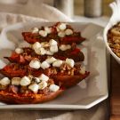 Twice-Baked Sweet Potatoes with Pecan-Bacon Streusel and Marshmallows