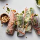 Gently pull the closest edge of the rice paper toward you and then pull and roll it over the filling. Tuck the filling tightly into the rice paper and roll it over once to secure it. Then fold over the sides to close the ends of the roll. Continue rolling the spring roll over itself until fully sealed. Repeat with the remaining rice papers and fillings.